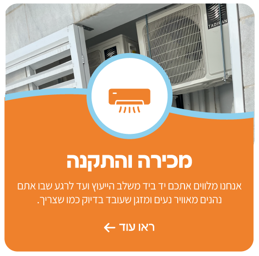 אנחנו מציעים גם מכירה וגם התקנה של כל סוגי המזגנים – עיליים, מיני מרכזיים, מולטי ומערכות VRF. אנחנו מלווים אתכם מהבחירה ועד הביצוע.